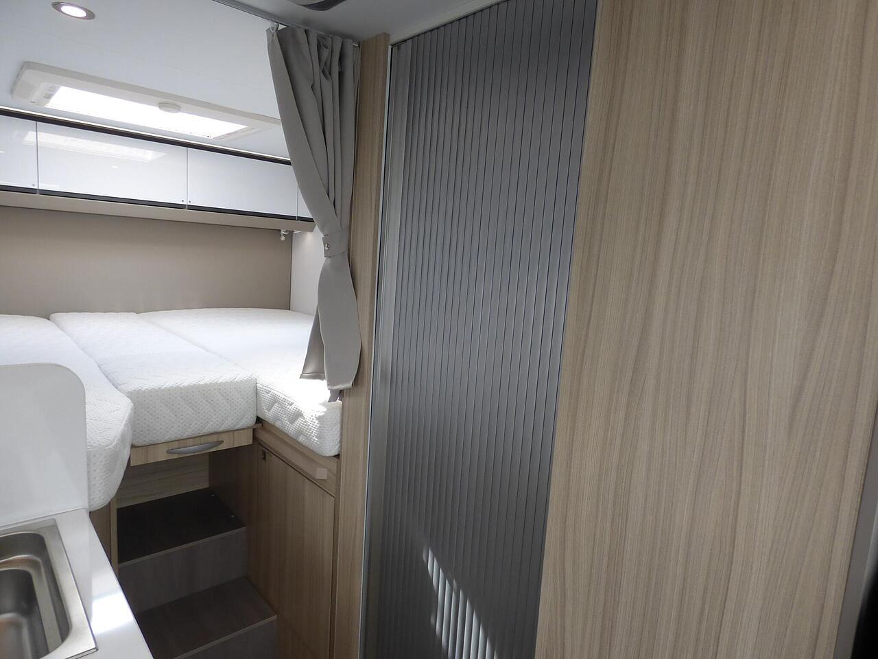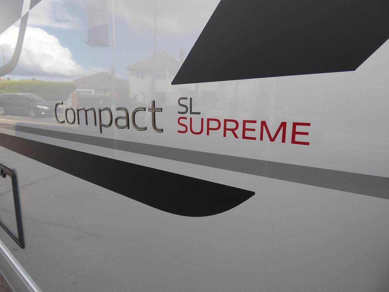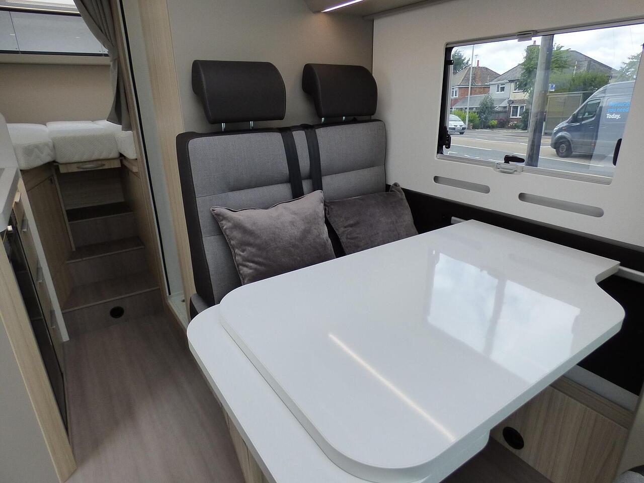 Solent are delighted to have been appointed as Adria main dealers for the Dorset and south coast and this Compact Supreme SL is in stock now. The beautifully built Compact Supreme offers all the features of a full size coach-built motorhome, but narrower, making ideal for touring those narrow lanes and more convenient to park too. Based on the new model Fiat Ducato chassis with 140bhp engine and new 8 speed automatic transmission, it also features the Fiat Lux pack which includes LED headlights and full LCD dash board with the new large infotainment monitor. Behind the front swivel seats, there is a dinette for 4. To the side, the well equipped kitchen has a 3 burner Gas hob, Gas oven/grill and a fridge/freezer. Opposite, behind a tambour door, the bathroom has a cassette type toilet, wash hand basin and a clever swinging wall to reveal a shower cubicle. The rear bedroom has large, comfortable single beds that come with infill cushions to create a large double with storage under. There is ample cupboard space throughout and on of the main highlights has to be the huge sunroof giving the motorhome a very airy feel. Heating and Hot water is by Truma combi boiler and other features of the Compact Supreme SL include: Pleated cab blinds, navigation system, reversing camera, Thule Omnistor wind out awning, Habitation A/C, Corner Legs, Carpets, Twin Leisure Batteries, Adaptive Cruise Control and Fiat Lux Pack. L. 6.79m, W. 2.12m, H. 2.75m, 3,500kg, 2 Berth, 4 Seatbelts, Delivery Mileage. -