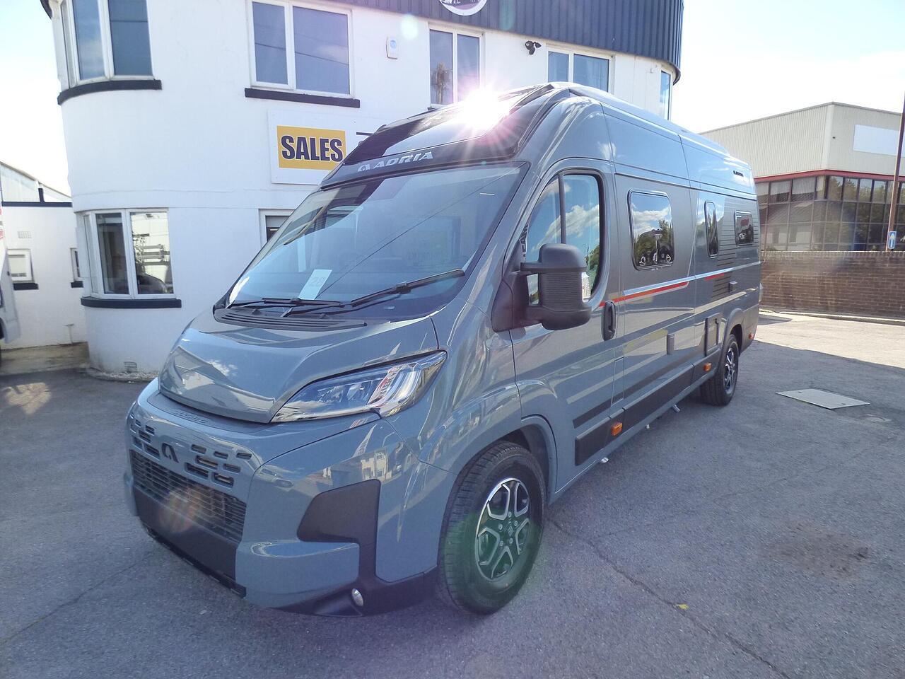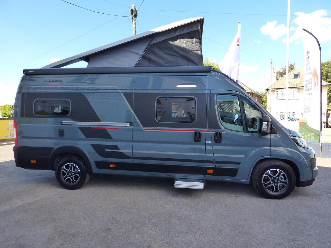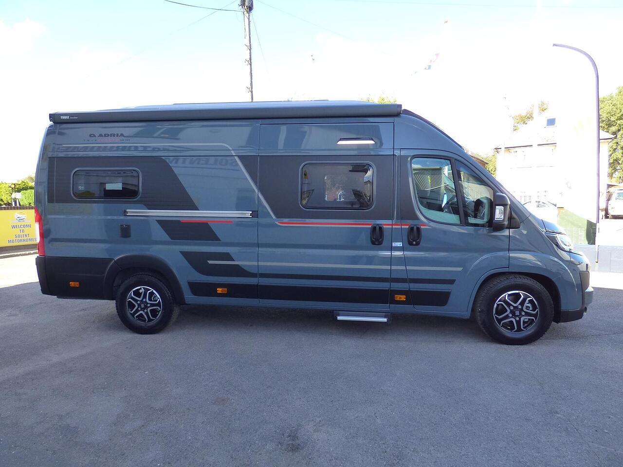 The stunning new 2026 model Adria Twin Sports 640 SGX is in stock now at Solent. One of the most sought after van conversions on the market, the Twin Sports is a superbly designed and built motorhome at home off the beaten track or travelling on adventures in foreign lands. The thoughtful design means there is a lot of storage space and every inch of the 6.36m is used well. The Twin is Fiat Ducato based featuring the new 2.2l 180bhp engine and 8 speed automatic transmission. Also fitted with the optional Lux pack, it boasts LED headlamps and a full LCD driving display. Behind the swivel seats is a dinette that seats 4 in comfort. A ladder accesses the pop-top roof with a comfortable, large double bed. To the side, the kitchen is fitted with a gas oven/grill, a 2 burner gas hob and a fridge/freezer. Opposite, behind a tambour door is the bathroom with cassette type toilet, wash hand basin and a clever partition for the shower. The bedroom has a large electric elevating double bed which can be moved out of the way to provide a huge storage area, ideal for transporting bikes. Heating is provided by a diesel heater with hot water by a Whale Gas boiler. Other features for this Adria Twin Sports 640 SGX include: Truma Habitation Air Conditioning, Pleated Cab Blinds, Navigation, Carpets, Thule Omnistor wind out awning, Pop-Top roof, Solar Panel, Flyscreen for sliding door, Larger 138l Fridge/freezer, Twin Leisure Batteries, Pull out platform, Heated Mattress, Pop top insulationLeather upholstery and Fiat Lux Pack. L. 6.36m, W. 2.05m, H. 2.60m, 4,250kg. 4 Berth, 4 Seatbelts, Delivery Mileage. Free Solent Pack worth £2250 comprising Scorpion S5+ Alarm & Tracker, 22" Falcon Smart TV, Falcon Soundbar and Falcon 4G motorhome WiFi, 11kg Gaslow refillable LPG system and Milenco Mirror Protectors. - The stunning new 2026 model Adria Twin Sports 640 SGX is in stock now at Solent. One of the most sought after van conversions on the market, the Twin Sports is a superbly designed and built motorhome at home off the beaten track or travelling on adventures in foreign lands. The thoughtful design means there is a lot of storage space and every inch of the 6.36m is used well. The Twin is Fiat Ducato based featuring the new 2.2l 180bhp engine and 8 speed automatic transmission. Also fitted with the optional Lux pack, it boasts LED headlamps and a full LCD driving display. Behind the swivel seats is a dinette that seats 4 in comfort. A ladder accesses the pop-top roof with a comfortable, large double bed. To the side, the kitchen is fitted with a gas oven/grill, a 2 burner gas hob and a fridge/freezer. Opposite, behind a tambour door is the bathroom with cassette type toilet, wash hand basin and a clever partition for the shower. The bedroom has a large electric elevating double bed which can be moved out of the way to provide a huge storage area, ideal for transporting bikes. Heating is provided by a diesel heater with hot water by a Whale Gas boiler. Other features for this Adria Twin Sports 640 SGX include: Truma Habitation Air Conditioning, Pleated Cab Blinds, Navigation, Carpets, Thule Omnistor wind out awning, Pop-Top roof, Solar Panel, Flyscreen for sliding door, Larger 138l Fridge/freezer, Twin Leisure Batteries, Pull out platform, Heated Mattress, Pop top insulationLeather upholstery and Fiat Lux Pack. L. 6.36m, W. 2.05m, H. 2.60m, 4,250kg. 4 Berth, 4 Seatbelts, Delivery Mileage. Free Solent Pack worth £1655 comprising Scorpion S5 Alarm & Tracker, 22" Falcon Smart TV, Falcon Soundbar and Falcon 4G motorhome WiFi! -