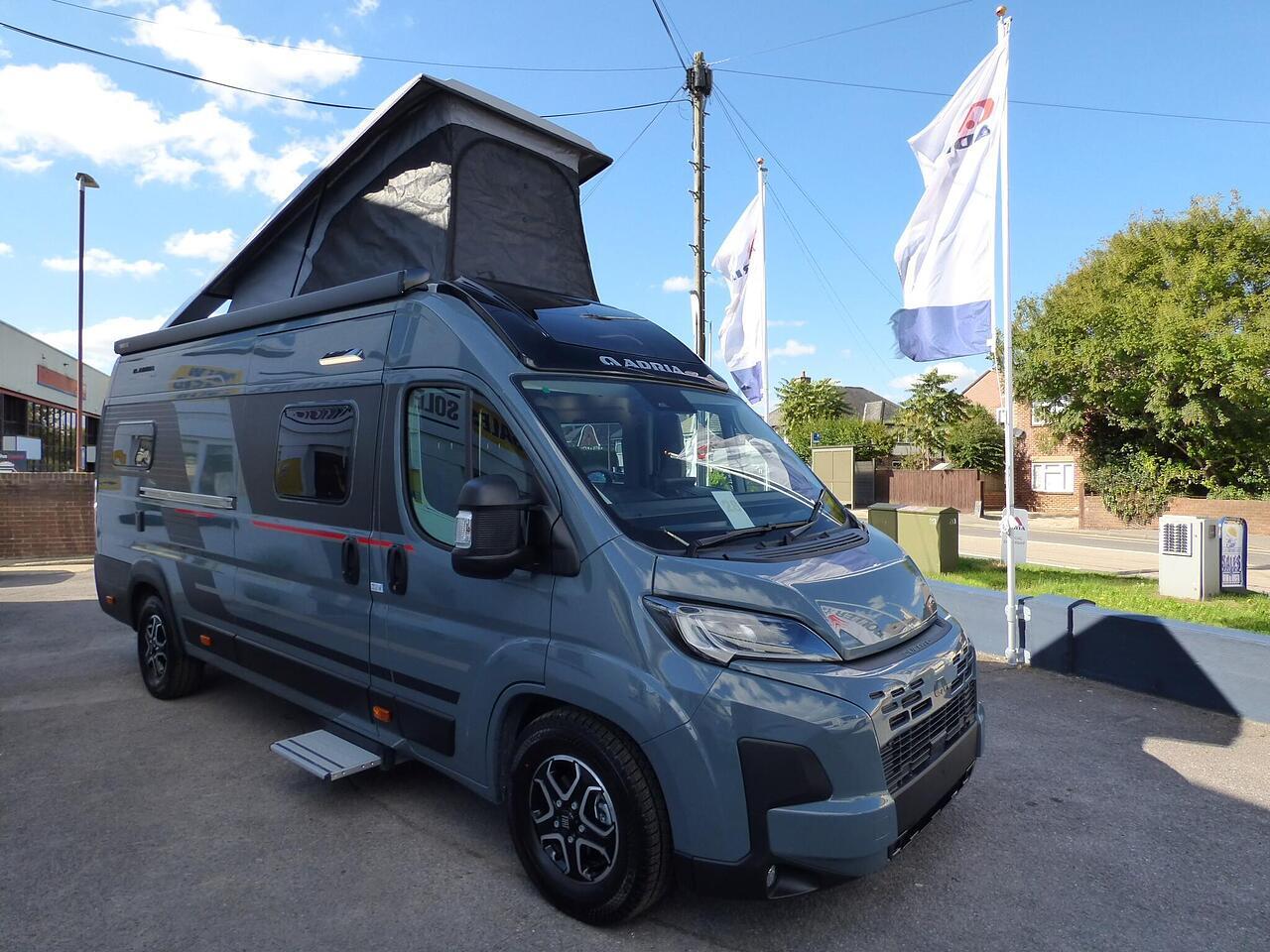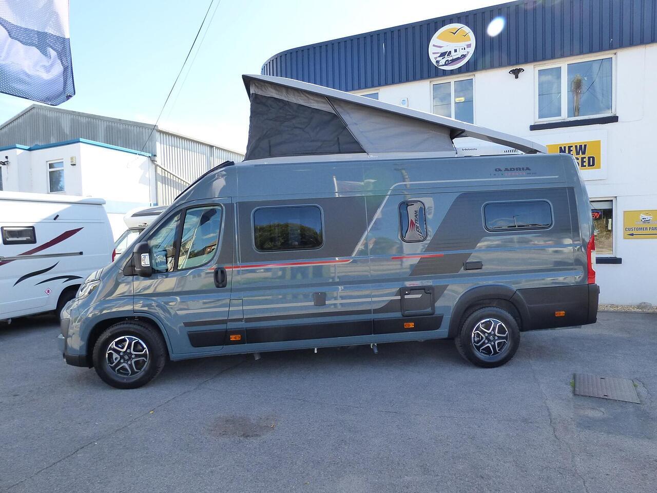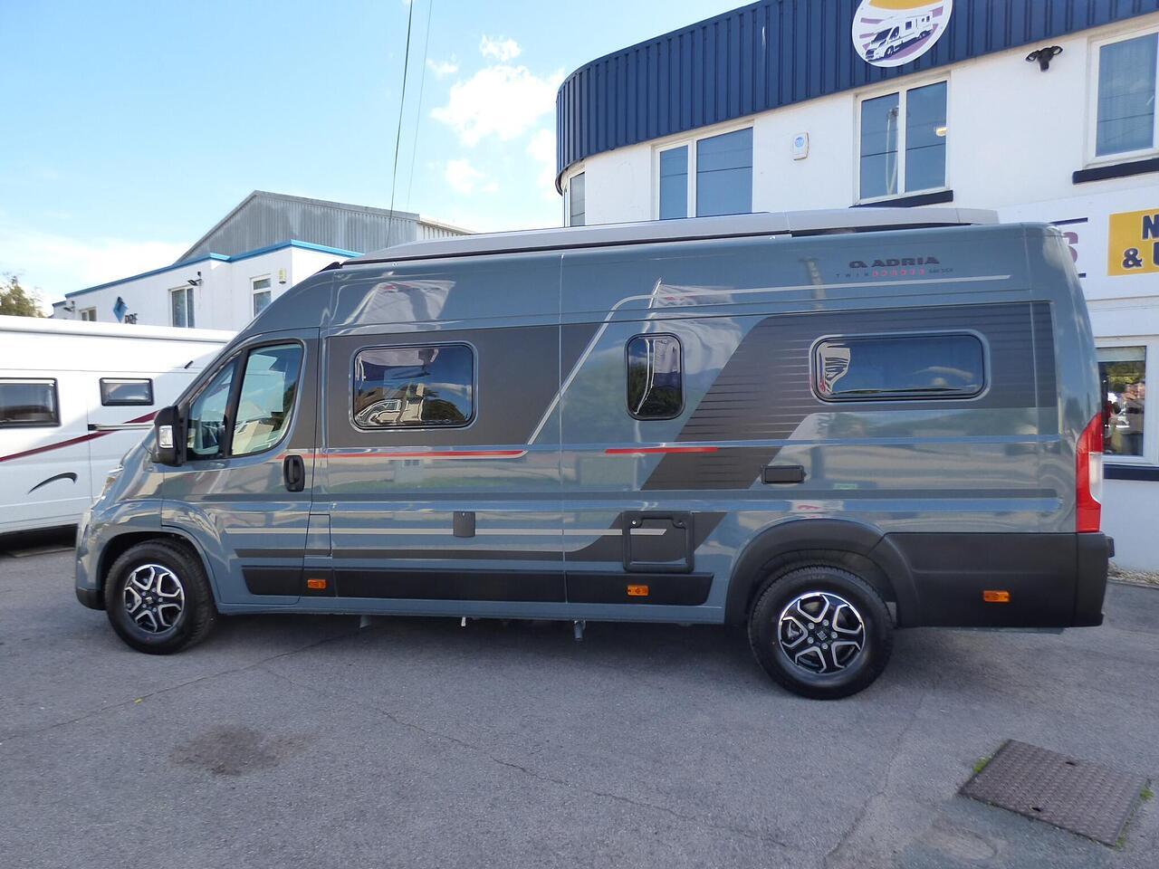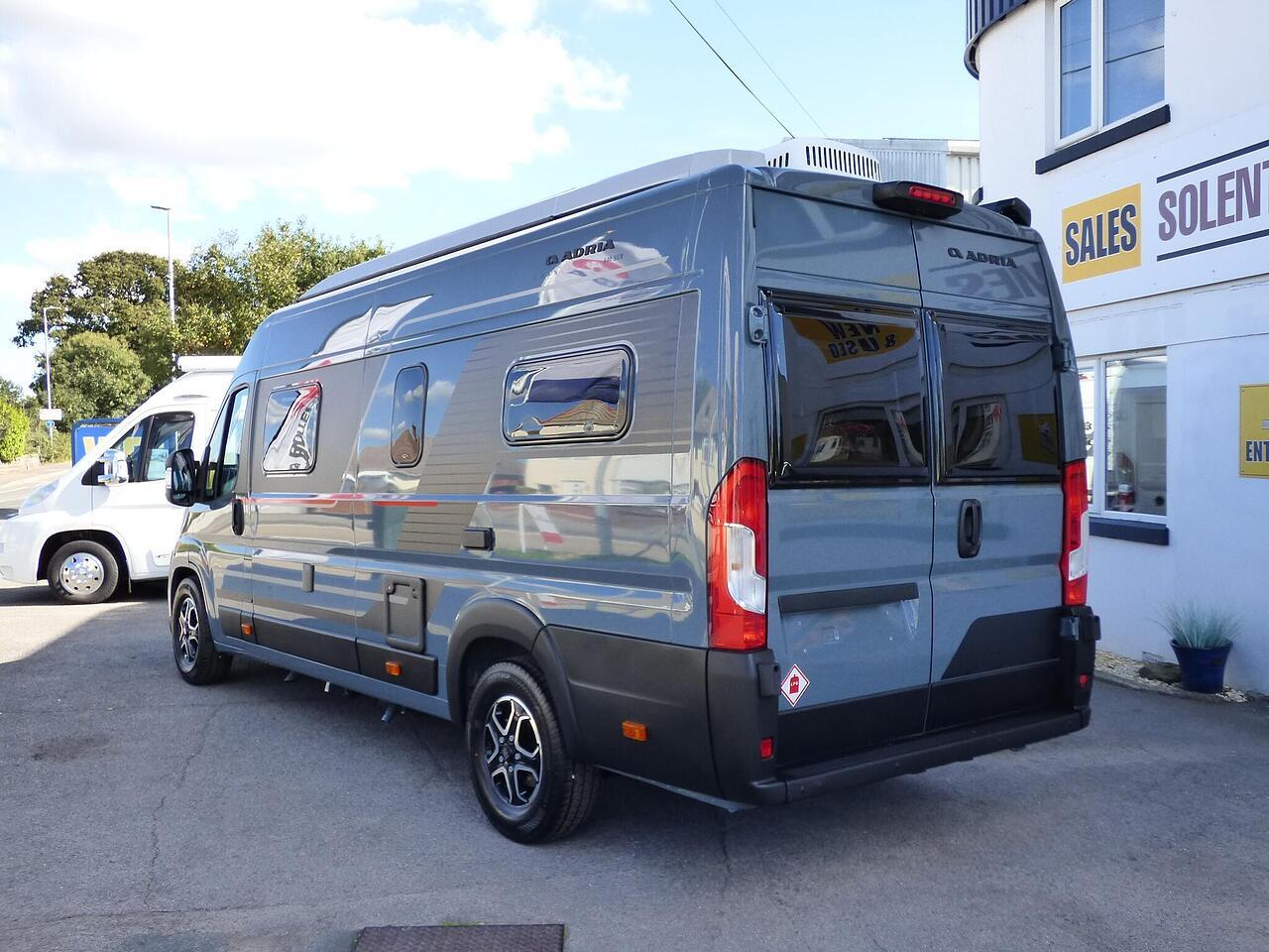 The stunning new 2026 model Adria Twin Sports 640 SGX is in stock now at Solent. One of the most sought after van conversions on the market, the Twin Sports is a superbly designed and built motorhome at home off the beaten track or travelling on adventures in foreign lands. The thoughtful design means there is a lot of storage space and every inch of the 6.36m is used well. The Twin is Fiat Ducato based featuring the new 2.2l 180bhp engine and 8 speed automatic transmission. Also fitted with the optional Lux pack, it boasts LED headlamps and a full LCD driving display. Behind the swivel seats is a dinette that seats 4 in comfort. A ladder accesses the pop-top roof with a comfortable, large double bed. To the side, the kitchen is fitted with a gas oven/grill, a 2 burner gas hob and a fridge/freezer. Opposite, behind a tambour door is the bathroom with cassette type toilet, wash hand basin and a clever partition for the shower. The bedroom has a large electric elevating double bed which can be moved out of the way to provide a huge storage area, ideal for transporting bikes. Heating is provided by a diesel heater with hot water by a Whale Gas boiler. Other features for this Adria Twin Sports 640 SGX include: Truma Habitation Air Conditioning, Pleated Cab Blinds, Navigation, Carpets, Thule Omnistor wind out awning, Pop-Top roof, Solar Panel, Flyscreen for sliding door, Larger 138l Fridge/freezer, Twin Leisure Batteries, Pull out platform, Heated Mattress, Pop top insulationLeather upholstery and Fiat Lux Pack. L. 6.36m, W. 2.05m, H. 2.60m, 4,250kg. 4 Berth, 4 Seatbelts, Delivery Mileage. Free Solent Pack worth £2250 comprising Scorpion S5+ Alarm & Tracker, 22" Falcon Smart TV, Falcon Soundbar and Falcon 4G motorhome WiFi, 11kg Gaslow refillable LPG system and Milenco Mirror Protectors. - The stunning new 2026 model Adria Twin Sports 640 SGX is in stock now at Solent. One of the most sought after van conversions on the market, the Twin Sports is a superbly designed and built motorhome at home off the beaten track or travelling on adventures in foreign lands. The thoughtful design means there is a lot of storage space and every inch of the 6.36m is used well. The Twin is Fiat Ducato based featuring the new 2.2l 180bhp engine and 8 speed automatic transmission. Also fitted with the optional Lux pack, it boasts LED headlamps and a full LCD driving display. Behind the swivel seats is a dinette that seats 4 in comfort. A ladder accesses the pop-top roof with a comfortable, large double bed. To the side, the kitchen is fitted with a gas oven/grill, a 2 burner gas hob and a fridge/freezer. Opposite, behind a tambour door is the bathroom with cassette type toilet, wash hand basin and a clever partition for the shower. The bedroom has a large electric elevating double bed which can be moved out of the way to provide a huge storage area, ideal for transporting bikes. Heating is provided by a diesel heater with hot water by a Whale Gas boiler. Other features for this Adria Twin Sports 640 SGX include: Truma Habitation Air Conditioning, Pleated Cab Blinds, Navigation, Carpets, Thule Omnistor wind out awning, Pop-Top roof, Solar Panel, Flyscreen for sliding door, Larger 138l Fridge/freezer, Twin Leisure Batteries, Pull out platform, Heated Mattress, Pop top insulationLeather upholstery and Fiat Lux Pack. L. 6.36m, W. 2.05m, H. 2.60m, 4,250kg. 4 Berth, 4 Seatbelts, Delivery Mileage. Free Solent Pack worth £1655 comprising Scorpion S5 Alarm & Tracker, 22" Falcon Smart TV, Falcon Soundbar and Falcon 4G motorhome WiFi! -