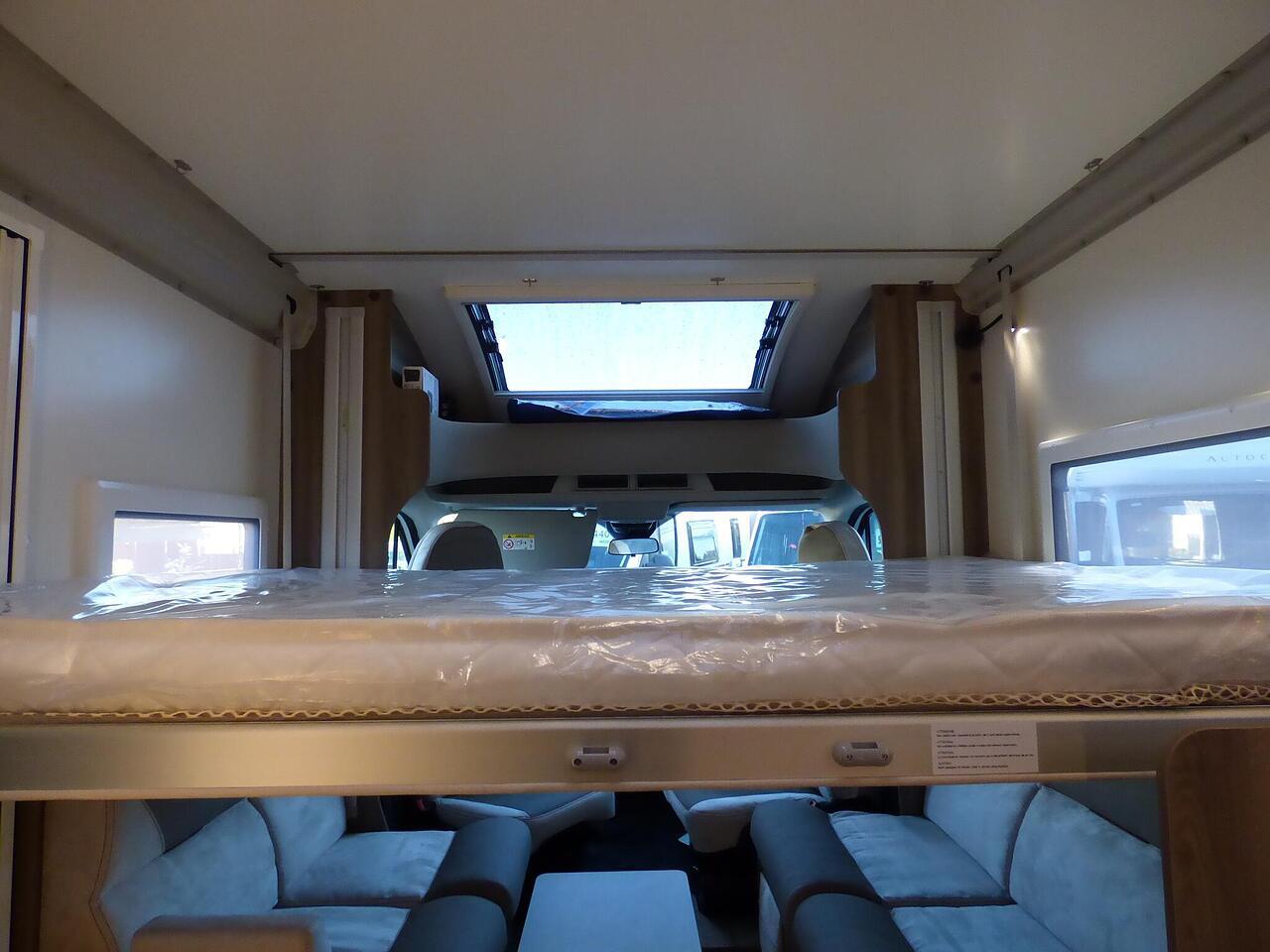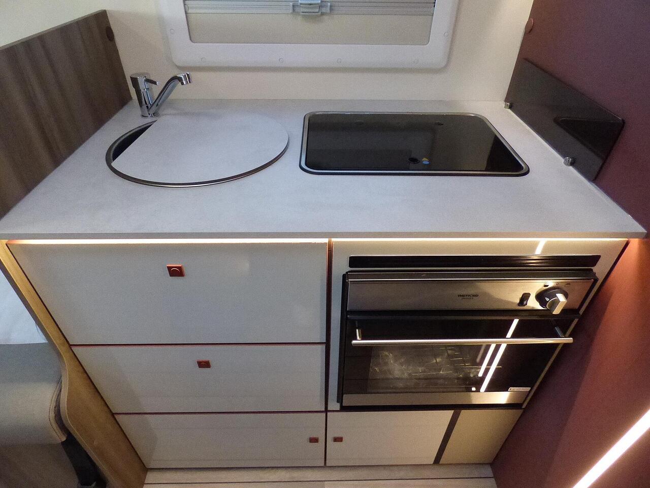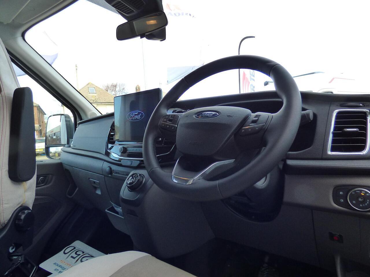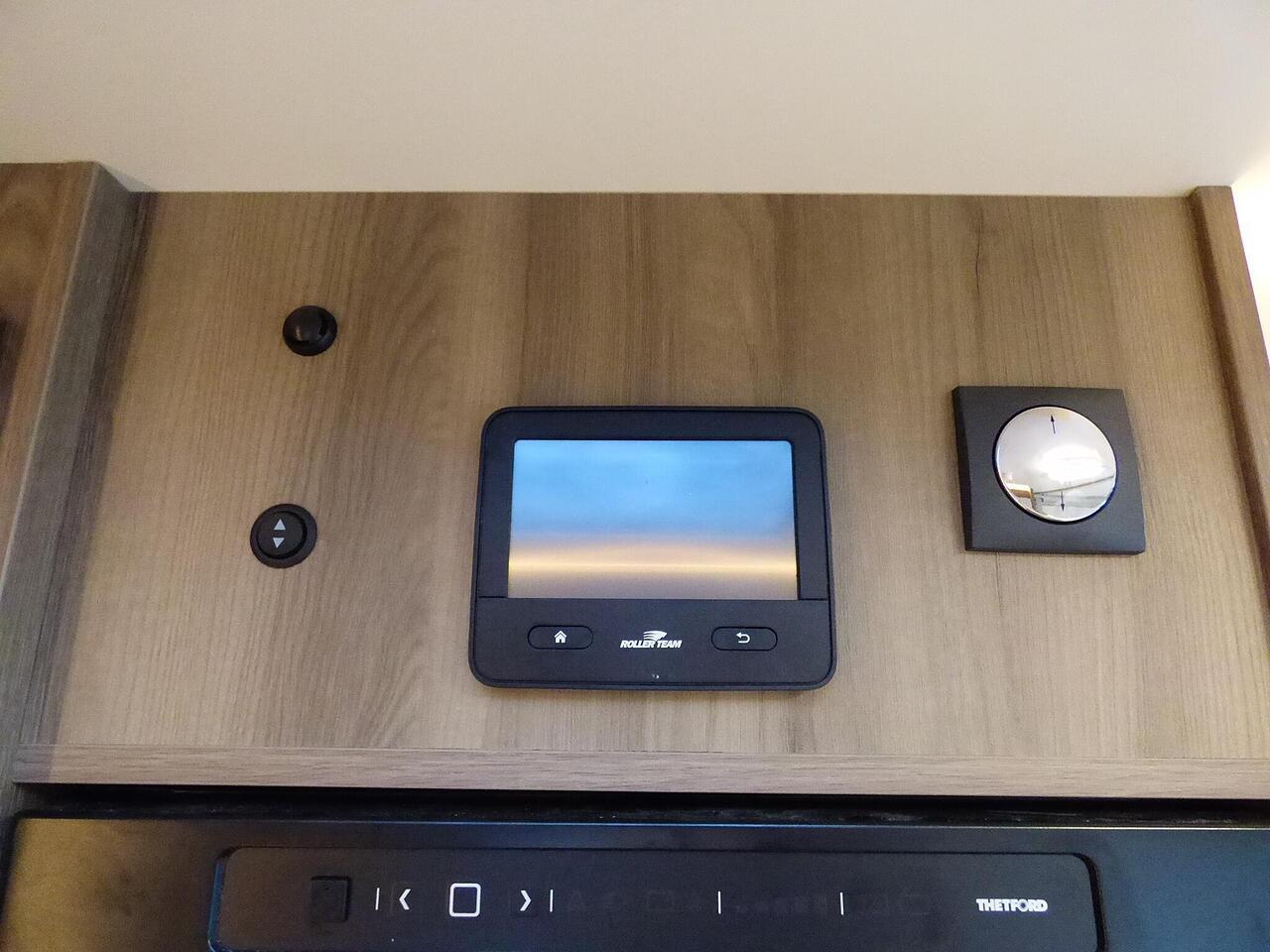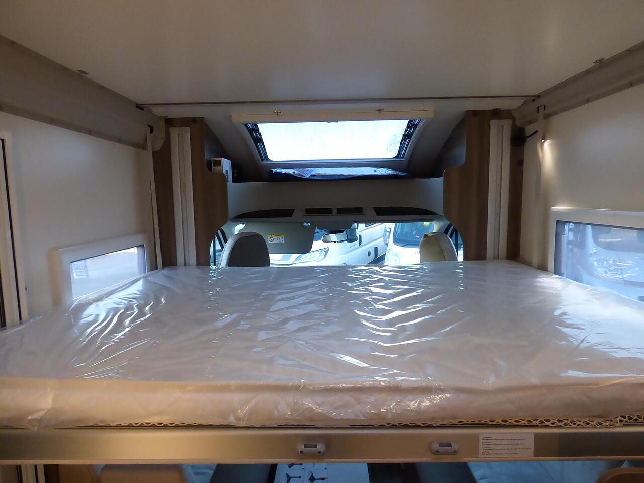 The all new Kronos 590 Compact from Roller Team - based latest Ford Transit chassis with 165bhp engine and 8 speed automatic transmission and fitted with the new 12" Ford infotainment system providing Apple Car Play and Android Auto, the new model also has front parking sensors and a new digital dashboard. The two front seats swivel to face the lounge where two opposing sofas form a surprisingly large dining and lounge area and also convert to a double bed for evening use and contain two further travelling seats with an electric elevating double bed over. The kitchen behind has a 2 burner gas hob, stainless steel sink with cover, Thetford gas oven/grill and large fridge/freezer. To the rear the bathroom has a separate shower cubicle, cassette type toilet and wash hand basin with cupboard space and access to the rear garage. Heating and hot water is via a Truma dual fuel system and other features for this Kronos 590 include: 200w Solar panel with MPPT controller, Reversing Camera, WiFi, Carpets, electric adjustable lounge table and Sat Nav/Infotainment system, Thule 4 bike rack, TV bracket and Thule wind out awning. 4 Berth, 4 seat belts. L. 5.99m, W. 2.15m, H. 2.85m, 3,500kg, delivery miles. - The all new Kronos 590 Compact from Roller Team - based latest Ford Transit chassis with 165bhp engine and 8 speed automatic transmission and fitted with the new 12" Ford infotainment system providing Apple Car Play and Android Auto, the new model also has front parking sensors and a new digital dashboard. The two front seats swivel to face the lounge where two opposing sofas form a surprisingly large dining and lounge area and also convert to a double bed for evening use and contain two further travelling seats with an electric elevating double bed over. The kitchen behind has a 2 burner gas hob, stainless steel sink with cover, Thetford gas oven/grill and large fridge/freezer. To the rear the bathroom has a separate shower cubicle, cassette type toilet and wash hand basin with cupboard space and access to the rear garage. Heating and hot water is via a Truma dual fuel system and other features for this Kronos 590 include: 200w Solar panel with MPPT controller, Reversing Camera, WiFi, Carpets, electric adjustable lounge table and Sat Nav/Infotainment system, Thule 4 bike rack, TV bracket and Thule wind out awning. 4 Berth, 4 seat belts. L. 5.99m, W. 2.15m, H. 2.85m, 3,500kg, delivery miles. -
