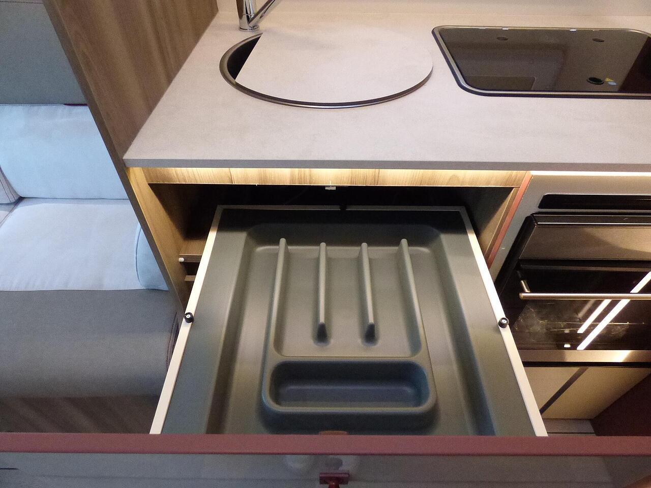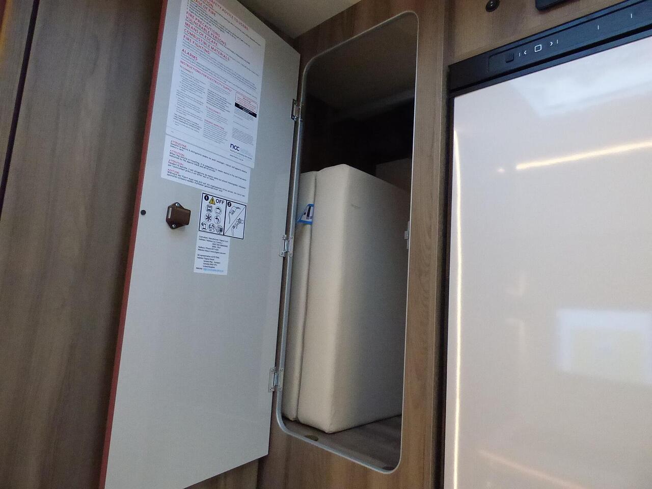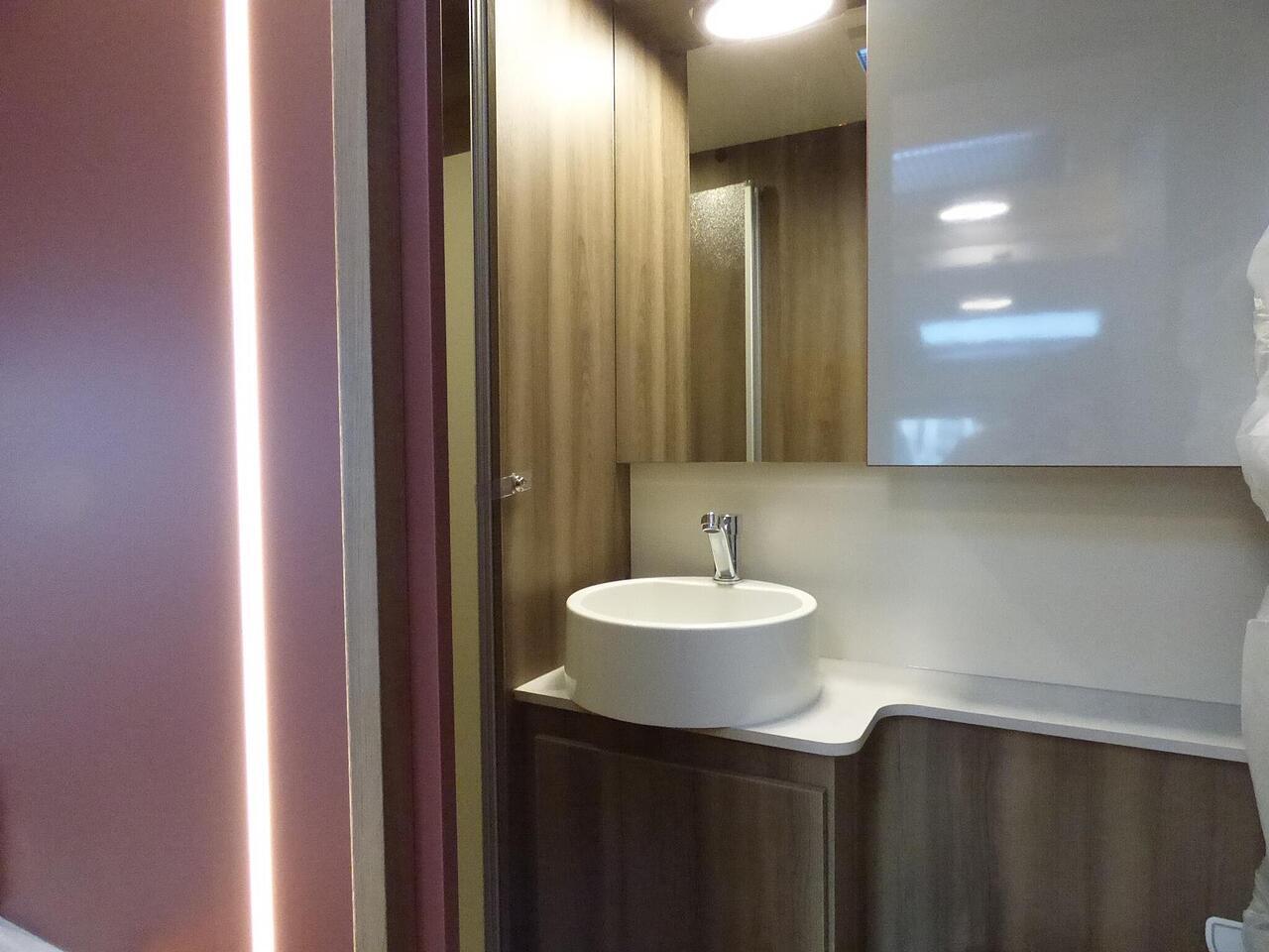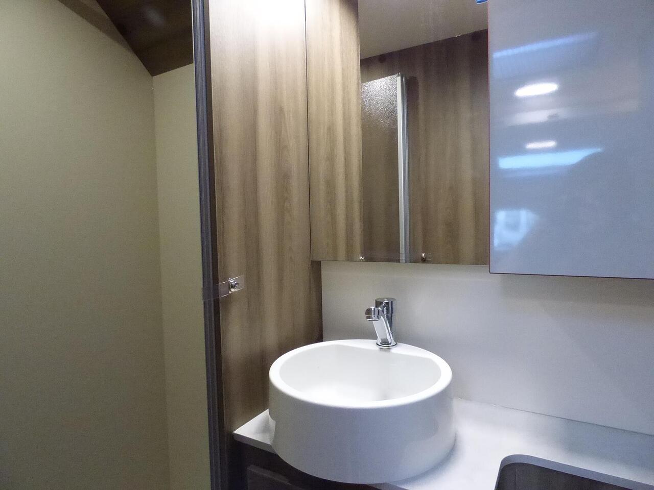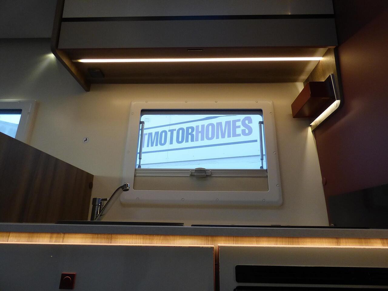 The all new Kronos 590 Compact from Roller Team - based latest Ford Transit chassis with 165bhp engine and 8 speed automatic transmission and fitted with the new 12" Ford infotainment system providing Apple Car Play and Android Auto, the new model also has front parking sensors and a new digital dashboard. The two front seats swivel to face the lounge where two opposing sofas form a surprisingly large dining and lounge area and also convert to a double bed for evening use and contain two further travelling seats with an electric elevating double bed over. The kitchen behind has a 2 burner gas hob, stainless steel sink with cover, Thetford gas oven/grill and large fridge/freezer. To the rear the bathroom has a separate shower cubicle, cassette type toilet and wash hand basin with cupboard space and access to the rear garage. Heating and hot water is via a Truma dual fuel system and other features for this Kronos 590 include: 200w Solar panel with MPPT controller, Reversing Camera, WiFi, Carpets, electric adjustable lounge table and Sat Nav/Infotainment system, Thule 4 bike rack, TV bracket and Thule wind out awning. 4 Berth, 4 seat belts. L. 5.99m, W. 2.15m, H. 2.85m, 3,500kg, delivery miles. - The all new Kronos 590 Compact from Roller Team - based latest Ford Transit chassis with 165bhp engine and 8 speed automatic transmission and fitted with the new 12" Ford infotainment system providing Apple Car Play and Android Auto, the new model also has front parking sensors and a new digital dashboard. The two front seats swivel to face the lounge where two opposing sofas form a surprisingly large dining and lounge area and also convert to a double bed for evening use and contain two further travelling seats with an electric elevating double bed over. The kitchen behind has a 2 burner gas hob, stainless steel sink with cover, Thetford gas oven/grill and large fridge/freezer. To the rear the bathroom has a separate shower cubicle, cassette type toilet and wash hand basin with cupboard space and access to the rear garage. Heating and hot water is via a Truma dual fuel system and other features for this Kronos 590 include: 200w Solar panel with MPPT controller, Reversing Camera, WiFi, Carpets, electric adjustable lounge table and Sat Nav/Infotainment system, Thule 4 bike rack, TV bracket and Thule wind out awning. 4 Berth, 4 seat belts. L. 5.99m, W. 2.15m, H. 2.85m, 3,500kg, delivery miles. -