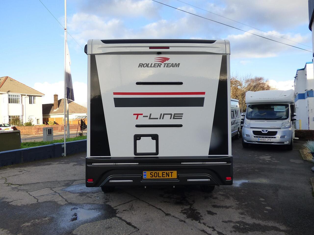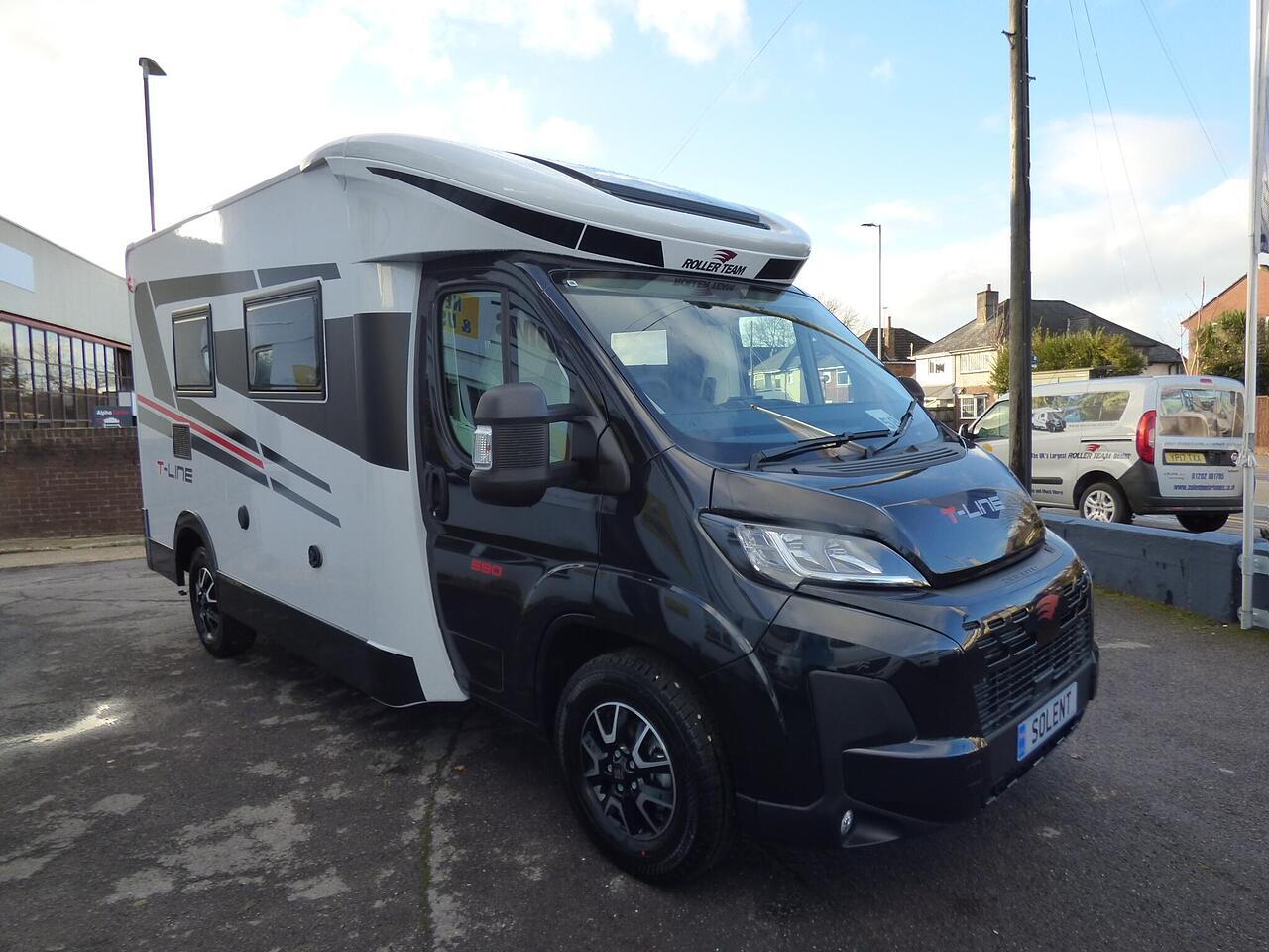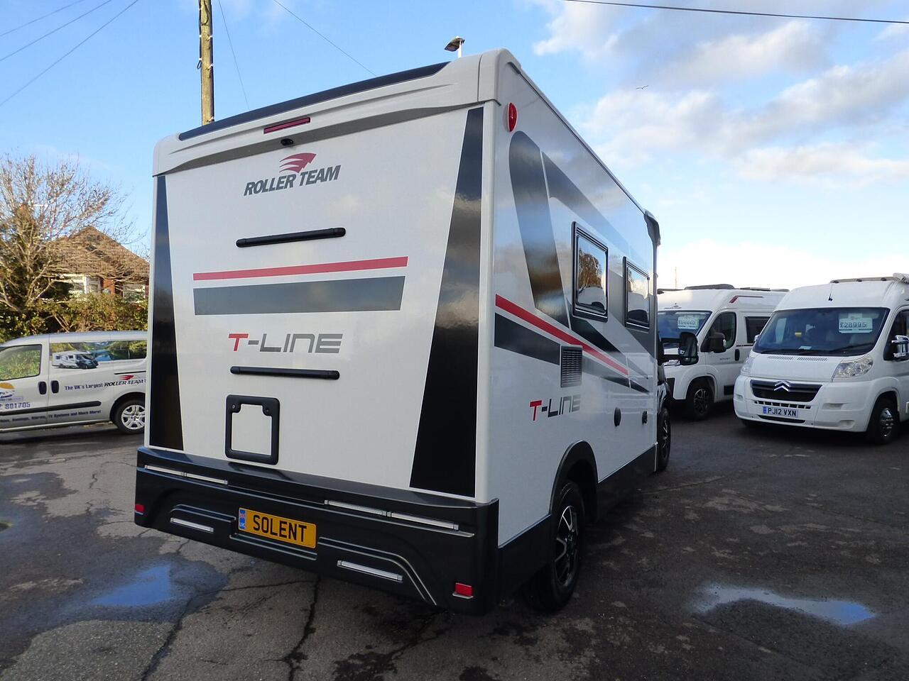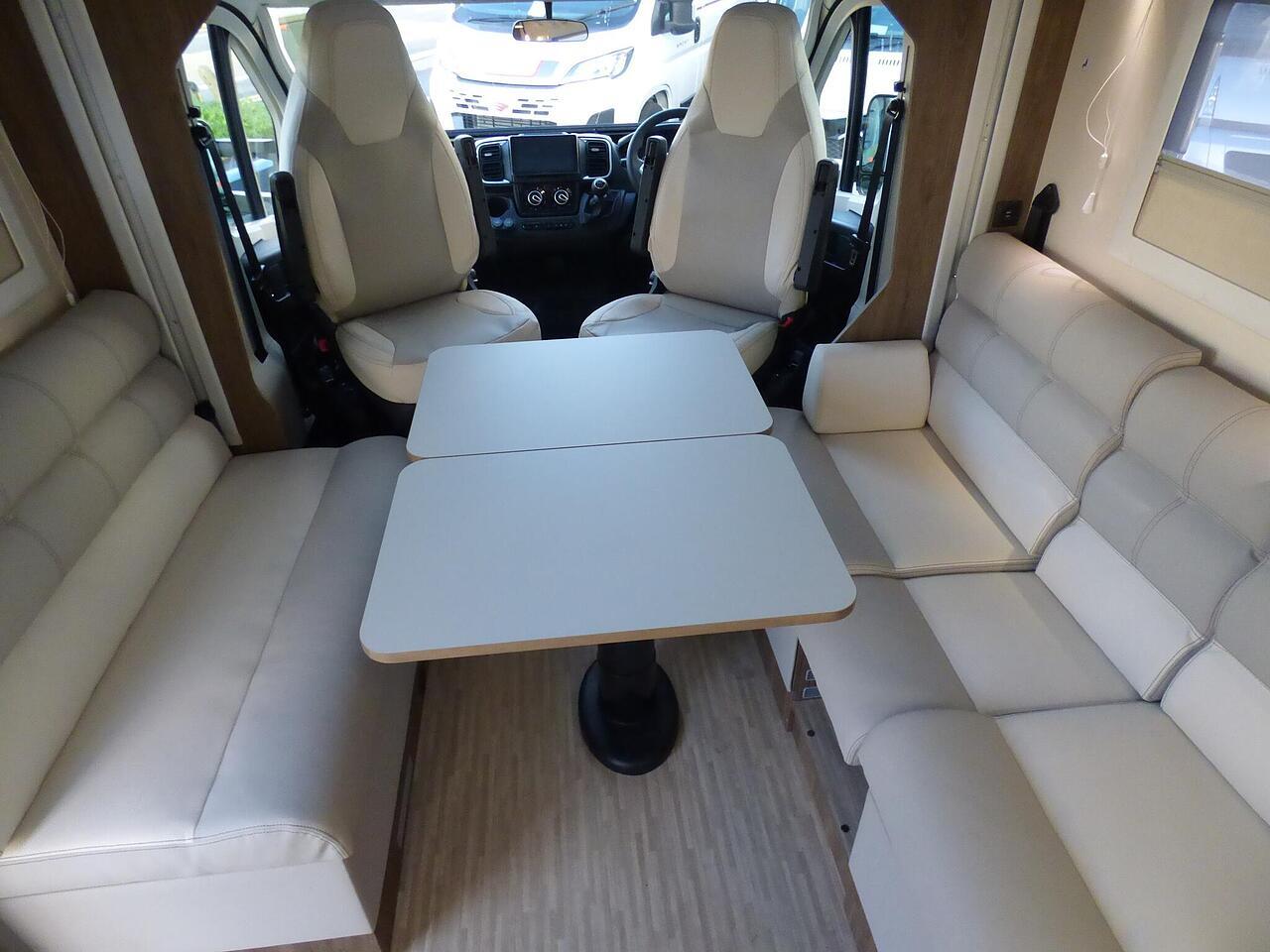 Brand New 2026 Model T-Line 590 140bhp manual in stock now. A Fantastic new layout to the T-Line range, the new 590 model provides new lounge set up and a host of new features but maintains the price point from the 2025 model. The lounge area is laid out as two opposing sofas with the front seats swivelling to accommodate 6 with ease. The large elevating bed over simply drops down for evening use. The central kitchen is fitted with a gas hob, gas oven/grill and a new compressor fridge/freezer. The rear bathroom has a separate shower cubicle, cassette type toilet and a wash hand basin along with access to the rear storage area. Heating and hot water is via a Truma dual fuel system and other features for this T-Line 590 include: Alloy Wheels, Pioneer infotainment system, Twin 200w solar panels with MPPT controllers, Twin leisure batteries, Fiamma bike rack, Thule wind out awning, External BBQ and Shower points, WiFi, pleated cab blinds, carpets and ISOfix child seat fixings. 4 berth, 4 seat belts, L. 5.99m, W. 2.35m, H. 2.95m, 3,500kg, delivery miles. -