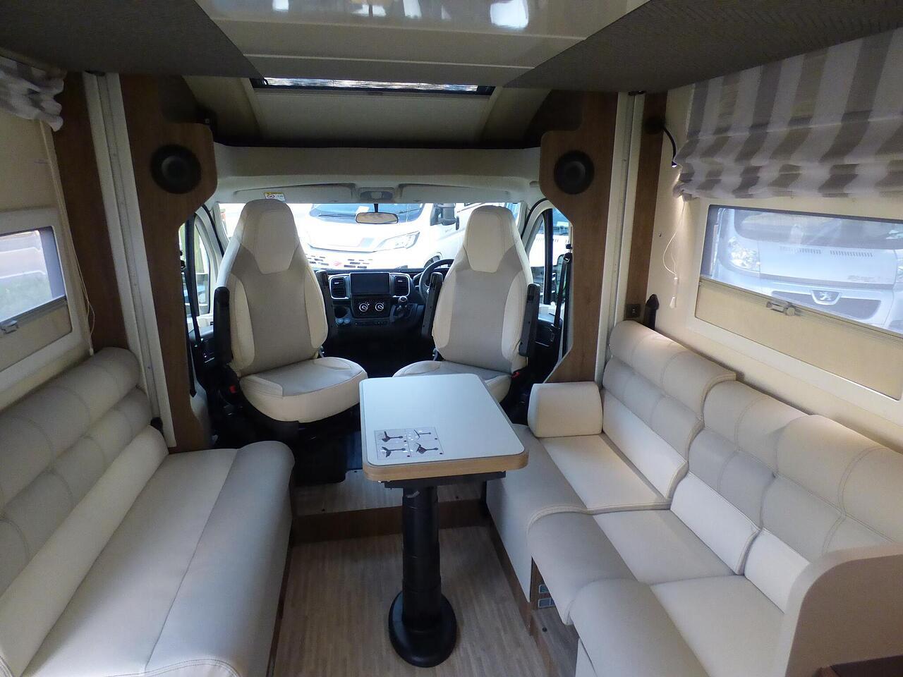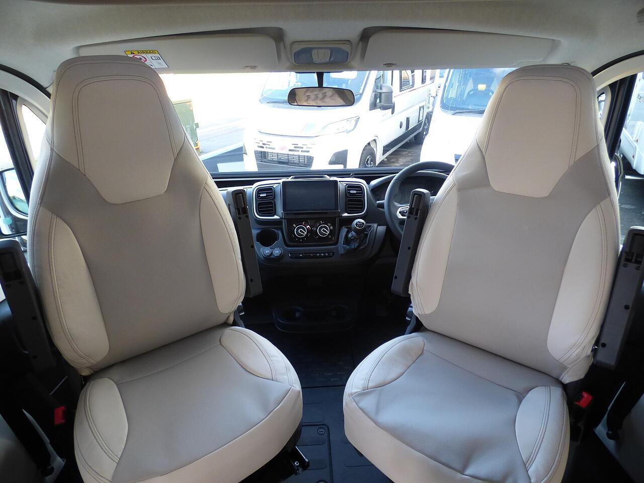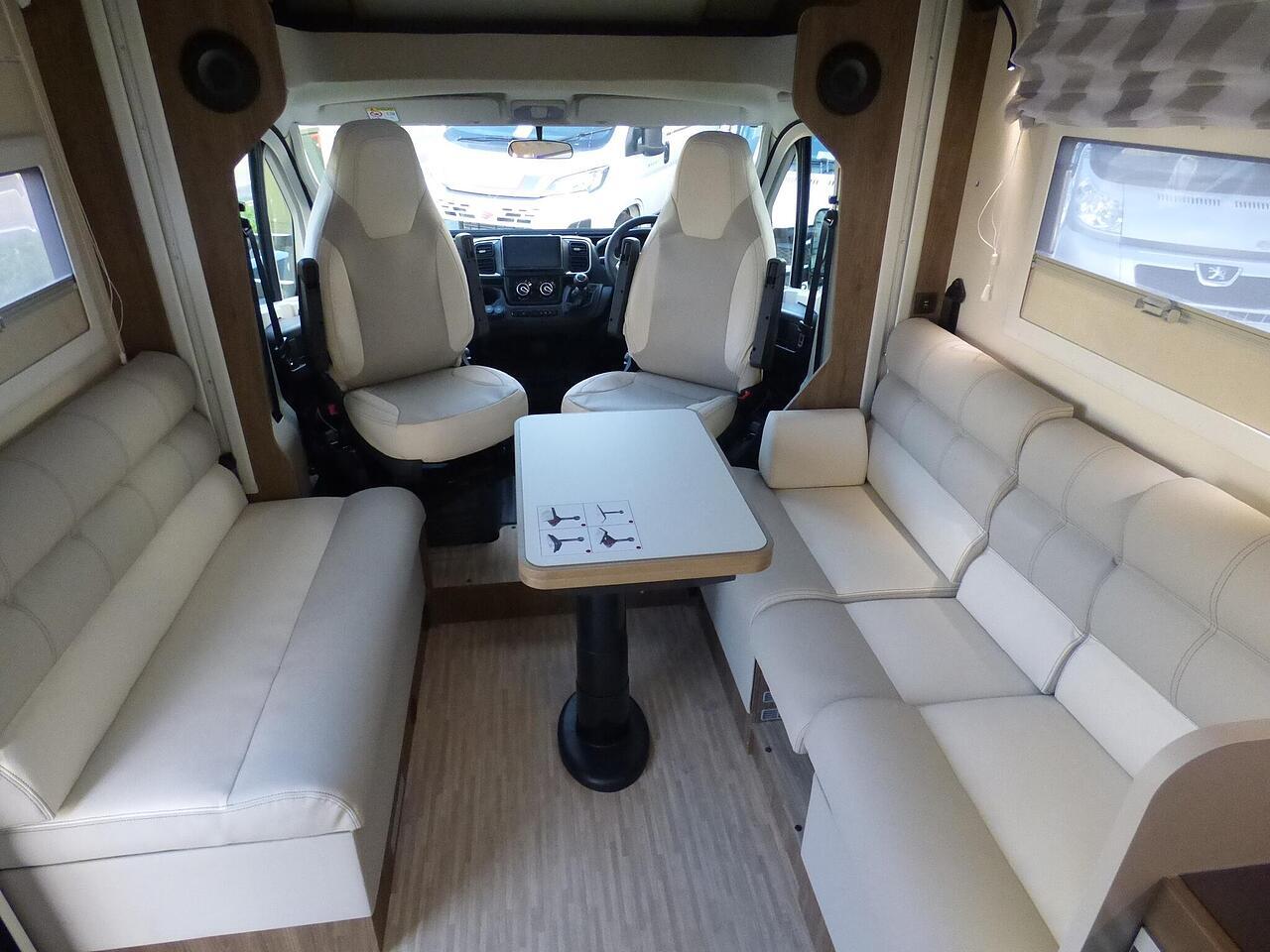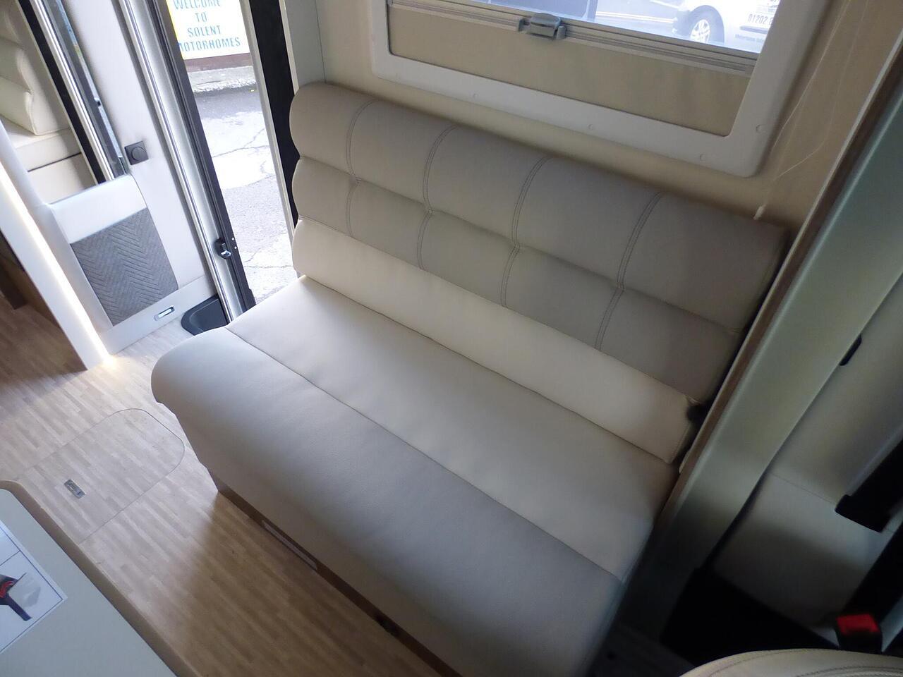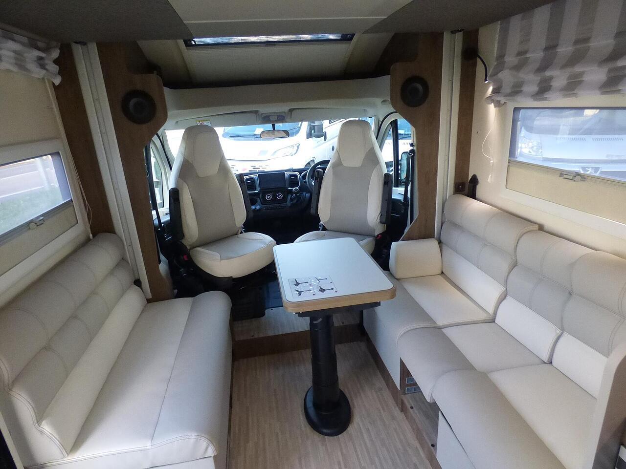 Brand New 2026 Model T-Line 590 140bhp manual in stock now. A Fantastic new layout to the T-Line range, the new 590 model provides new lounge set up and a host of new features but maintains the price point from the 2025 model. The lounge area is laid out as two opposing sofas with the front seats swivelling to accommodate 6 with ease. The large elevating bed over simply drops down for evening use. The central kitchen is fitted with a gas hob, gas oven/grill and a new compressor fridge/freezer. The rear bathroom has a separate shower cubicle, cassette type toilet and a wash hand basin along with access to the rear storage area. Heating and hot water is via a Truma dual fuel system and other features for this T-Line 590 include: Alloy Wheels, Pioneer infotainment system, Twin 200w solar panels with MPPT controllers, Twin leisure batteries, Fiamma bike rack, Thule wind out awning, External BBQ and Shower points, WiFi, pleated cab blinds, carpets and ISOfix child seat fixings. 4 berth, 4 seat belts, L. 5.99m, W. 2.35m, H. 2.95m, 3,500kg, delivery miles. -