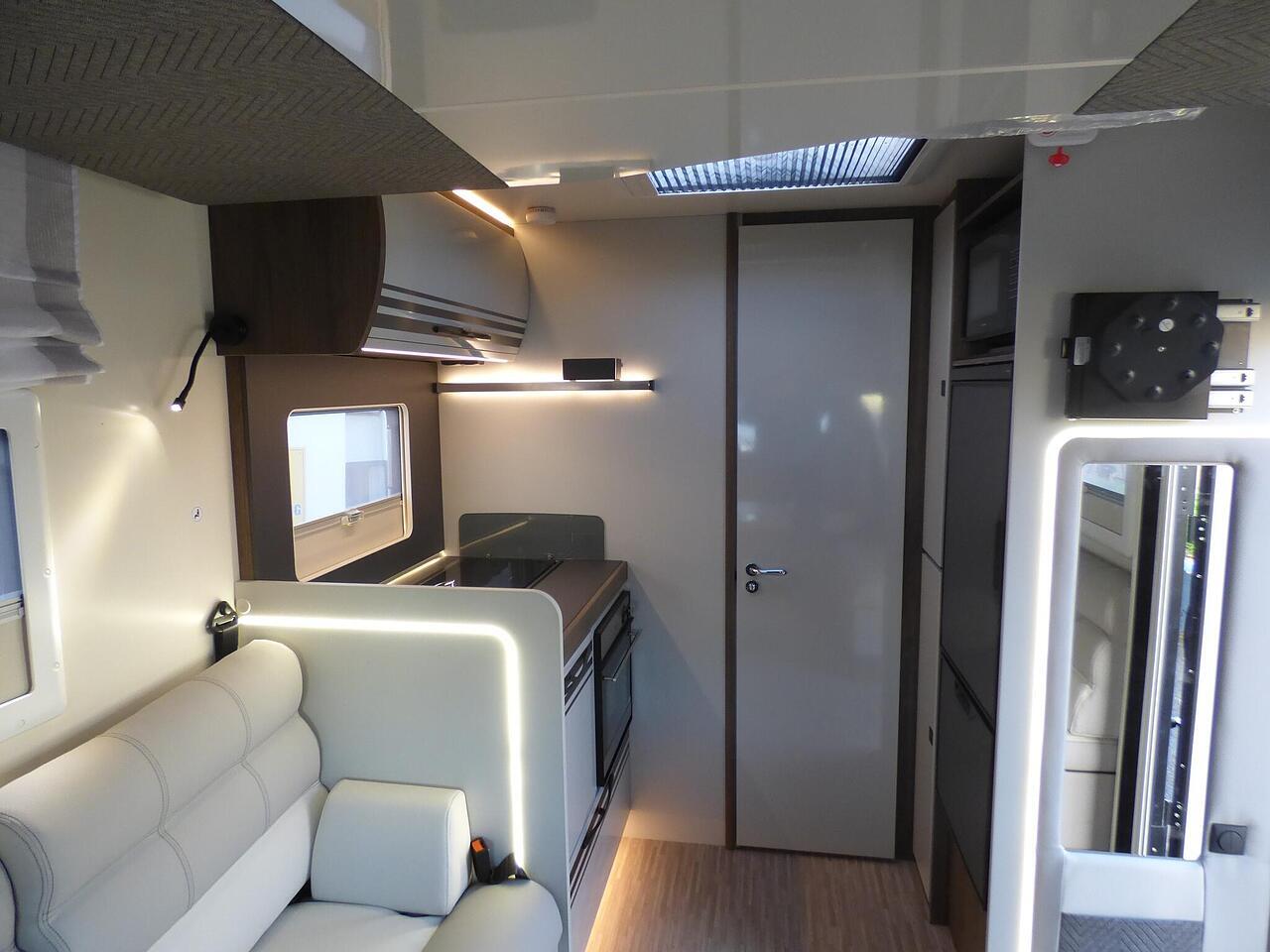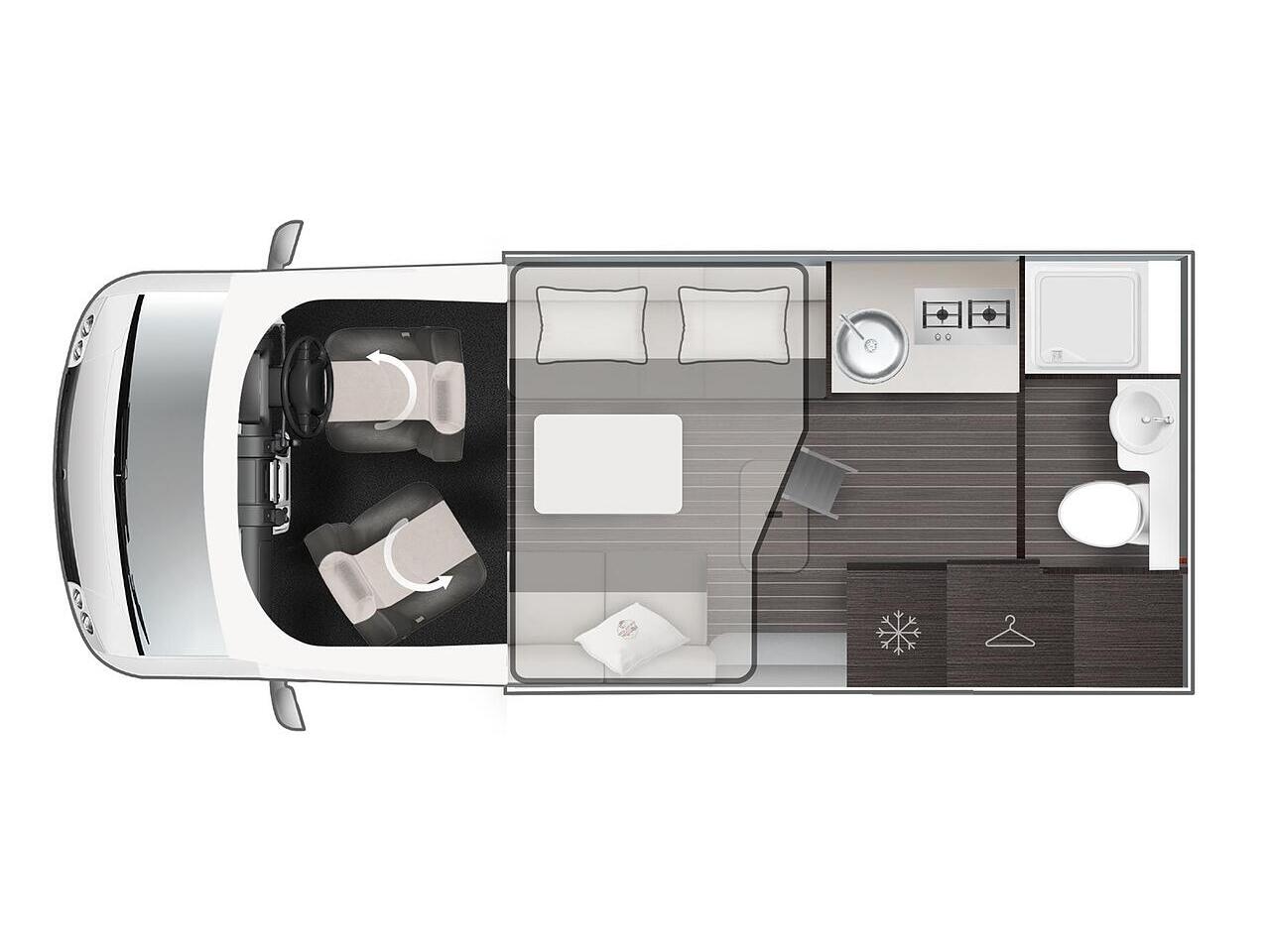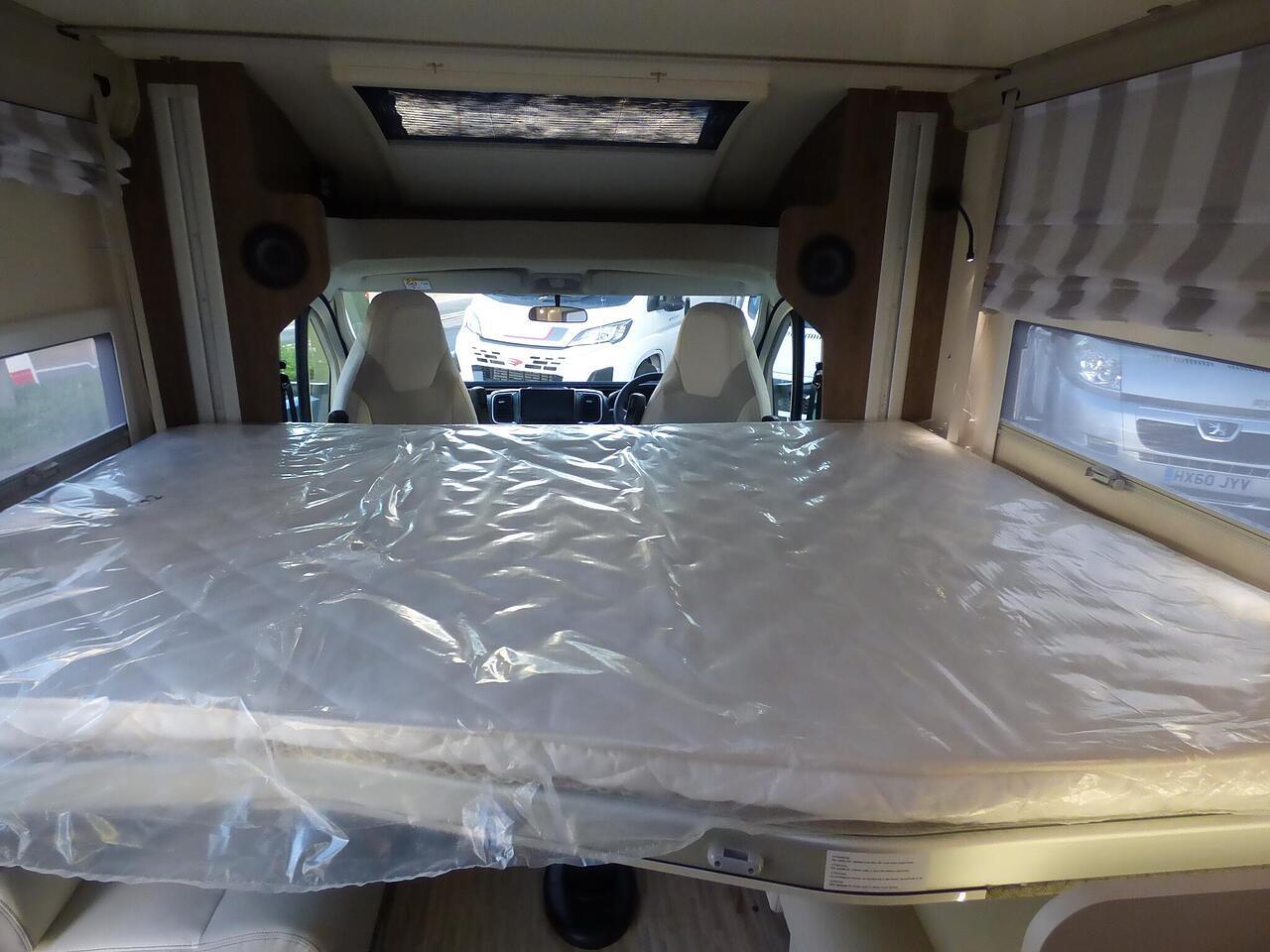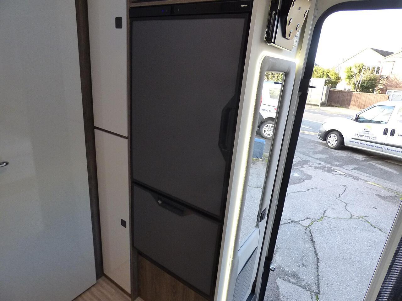 Brand New 2026 Model T-Line 590 140bhp manual in stock now. A Fantastic new layout to the T-Line range, the new 590 model provides new lounge set up and a host of new features but maintains the price point from the 2025 model. The lounge area is laid out as two opposing sofas with the front seats swivelling to accommodate 6 with ease. The large elevating bed over simply drops down for evening use. The central kitchen is fitted with a gas hob, gas oven/grill and a new compressor fridge/freezer. The rear bathroom has a separate shower cubicle, cassette type toilet and a wash hand basin along with access to the rear storage area. Heating and hot water is via a Truma dual fuel system and other features for this T-Line 590 include: Alloy Wheels, Pioneer infotainment system, Twin 200w solar panels with MPPT controllers, Twin leisure batteries, Fiamma bike rack, Thule wind out awning, External BBQ and Shower points, WiFi, pleated cab blinds, carpets and ISOfix child seat fixings. 4 berth, 4 seat belts, L. 5.99m, W. 2.35m, H. 2.95m, 3,500kg, delivery miles. -